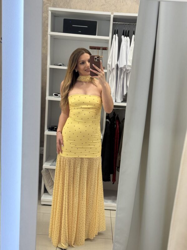Carrie maxi φόρεμα πουά – Κίτρινο παστέλ