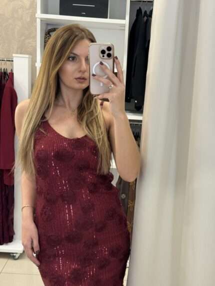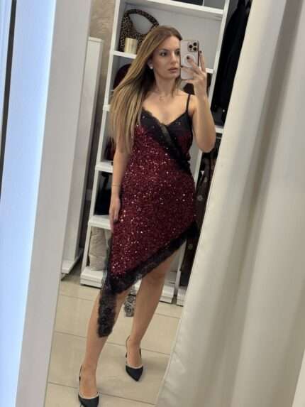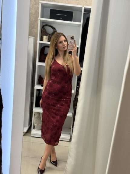 Nate midi φόρεμα παγιέτα – Μπορντό