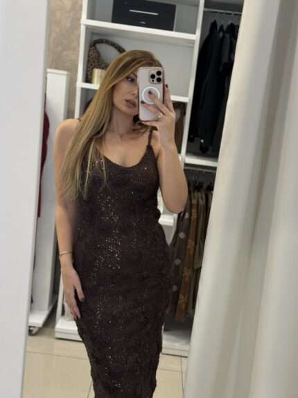 Nate midi φόρεμα παγιέτα – Καφέ