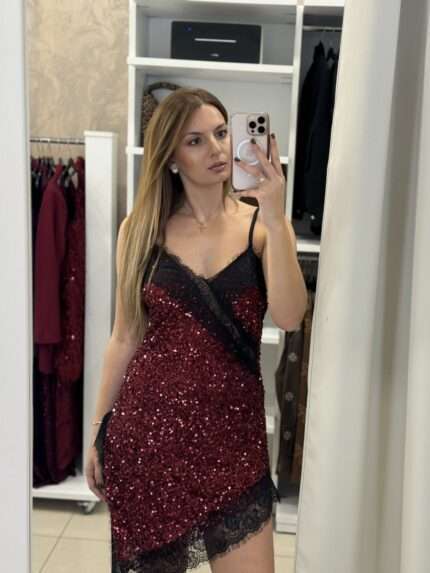 Meg mini φόρεμα παγιέτα – Μπορντό