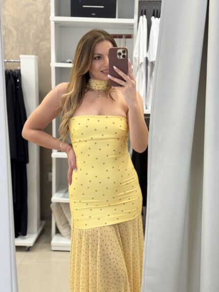 Carrie maxi φόρεμα πουά – Κίτρινο παστέλ