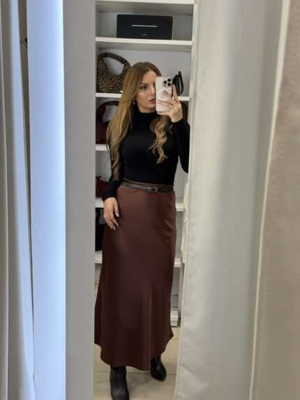 Gina σατέν midi φούστα – Καφέ