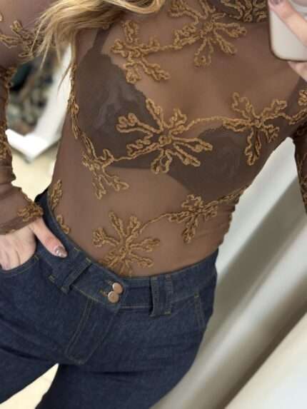 Milena see through bodysuit – Καφέ