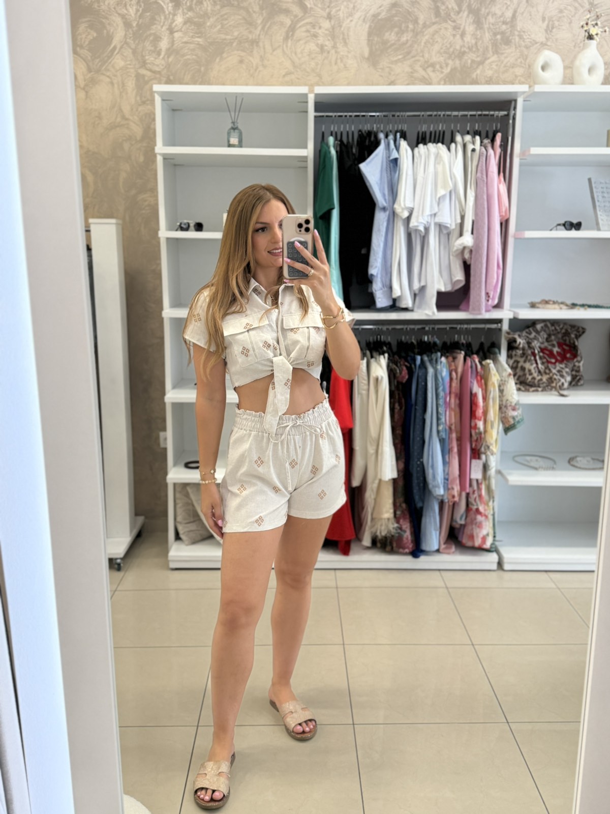 Amorgos Σετ με Crop Πουκάμισο/Σορτς – Μπεζ