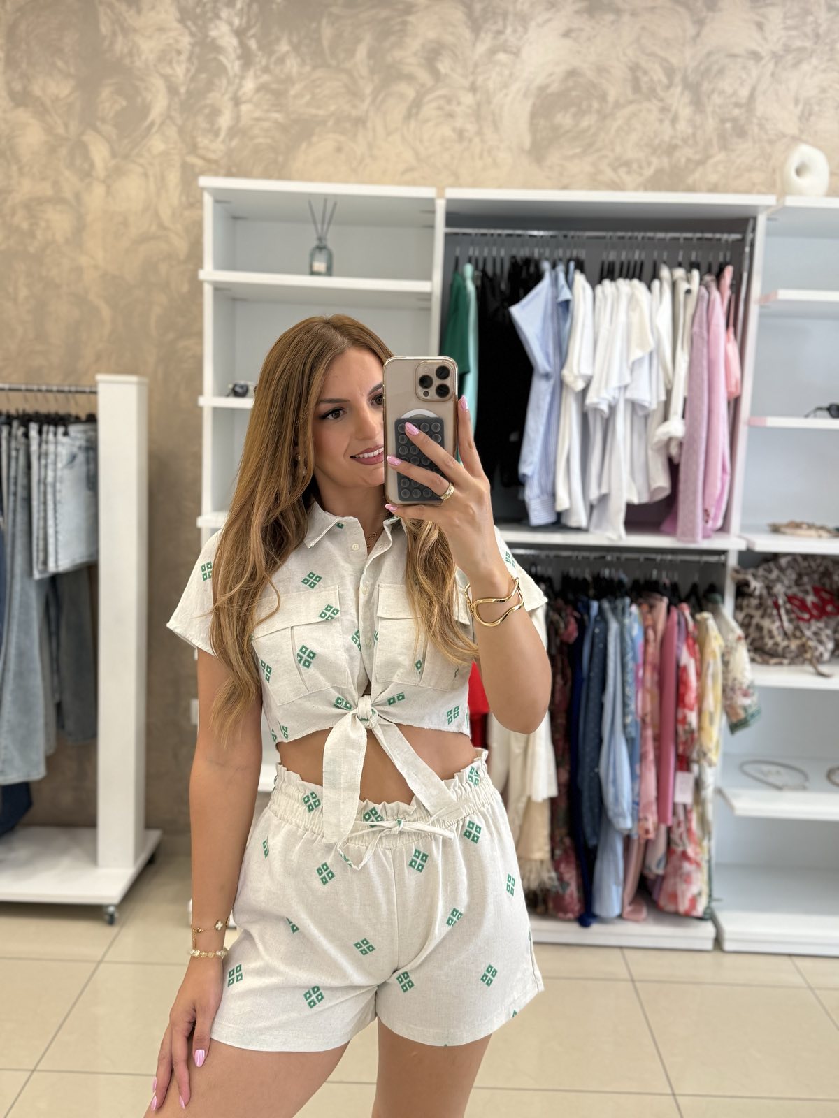 Amorgos Σετ με Crop Πουκάμισο/Σορτς – Πράσινο