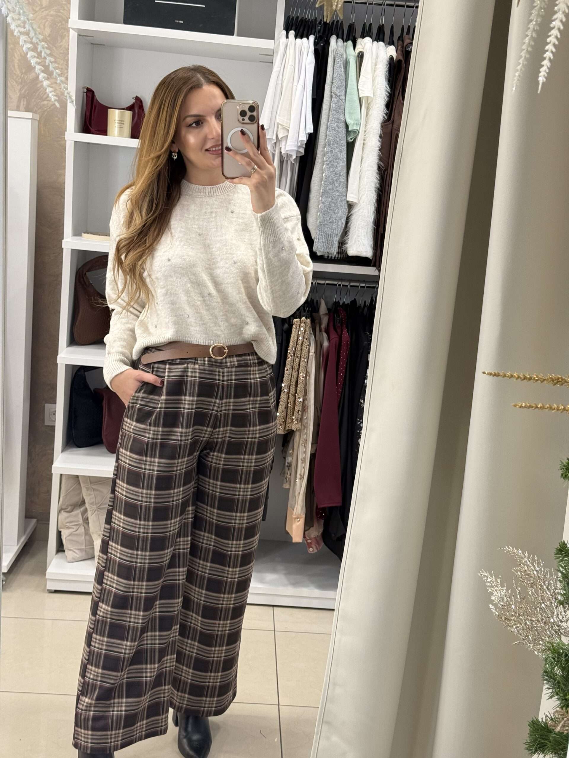 Dina καρό παντελόνα – Καφέ