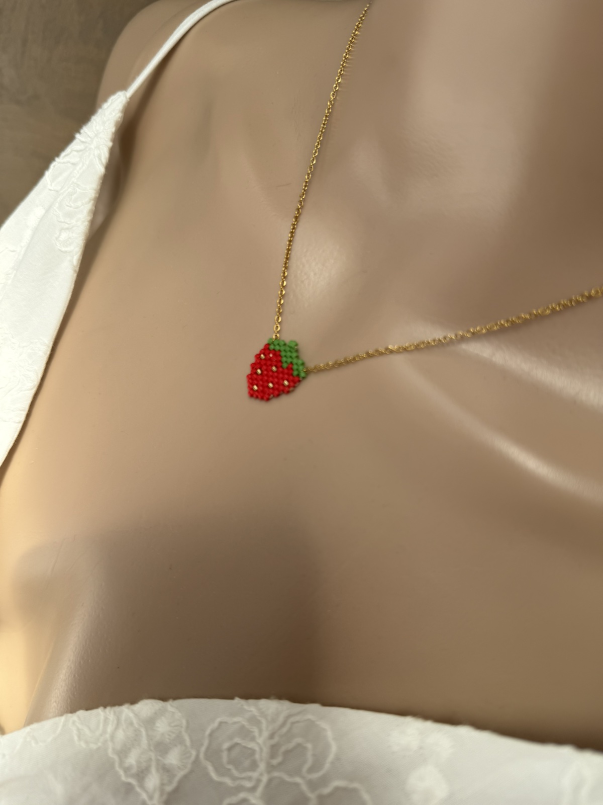 - Κολιέ ατσάλινο με φράουλα μαρκαμέ