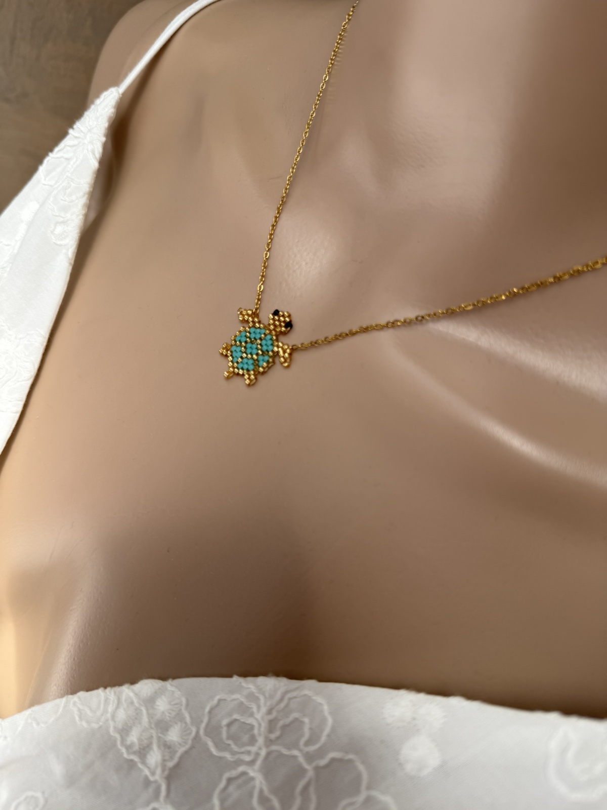 - Κολιέ ατσάλινο με χελώνα μαρκαμέ