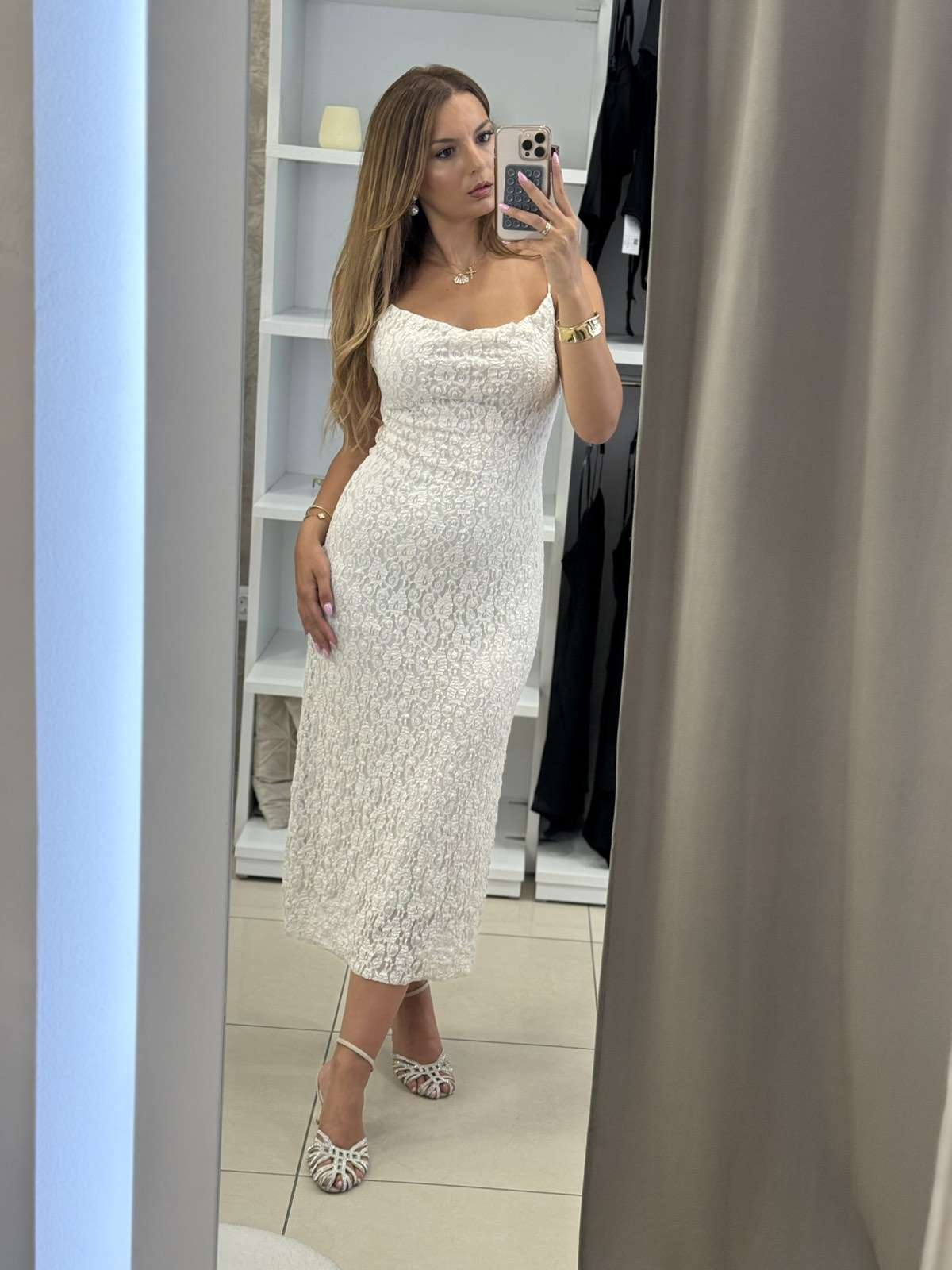 Lace midi φόρεμα – Εκρού
