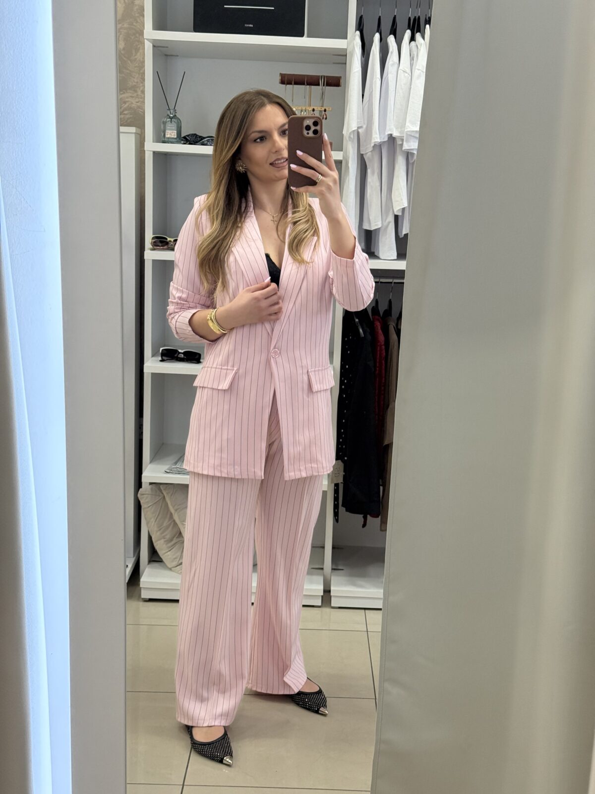 - Σετ κοστούμι ρίγα παντελόνα με blazer