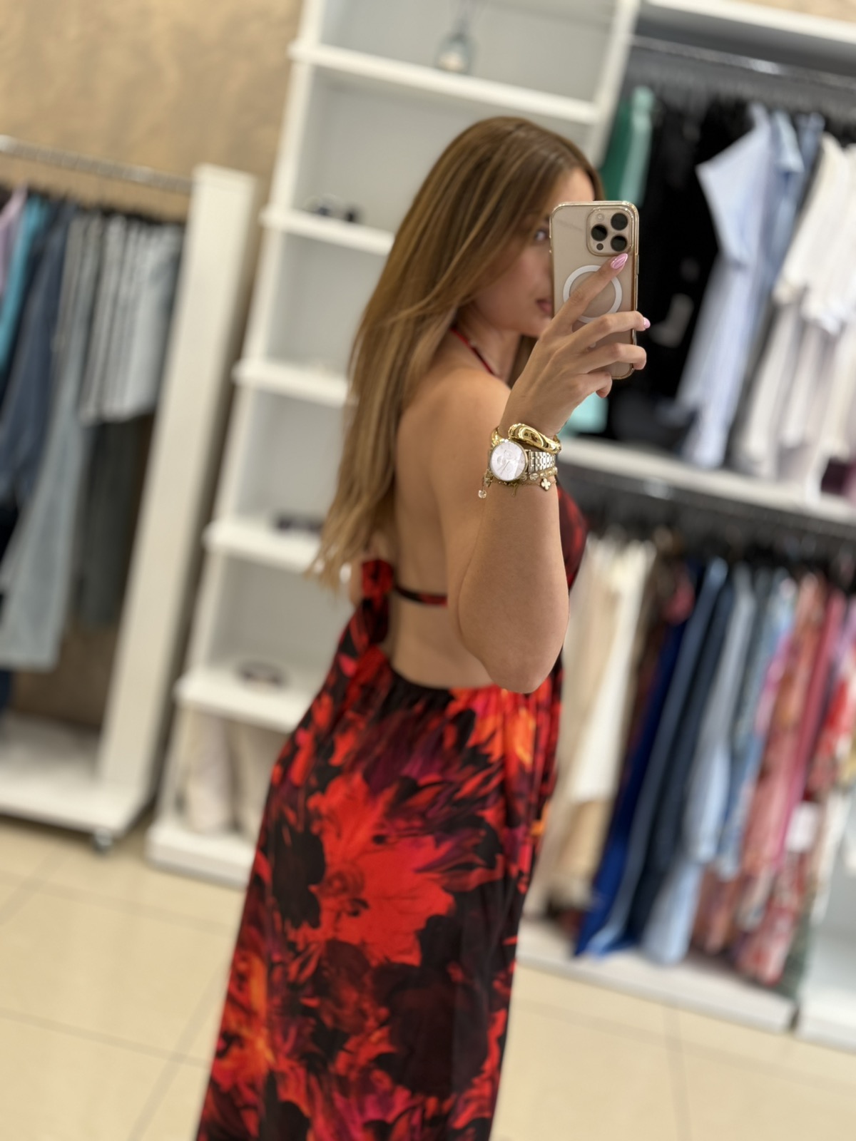 - Maxi φόρεμα με cut out και σκίσιμο στο μπροστινό μέρος