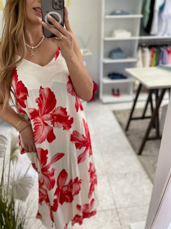 Nikol midi φόρεμα εμπριμέ – Κόκκινο