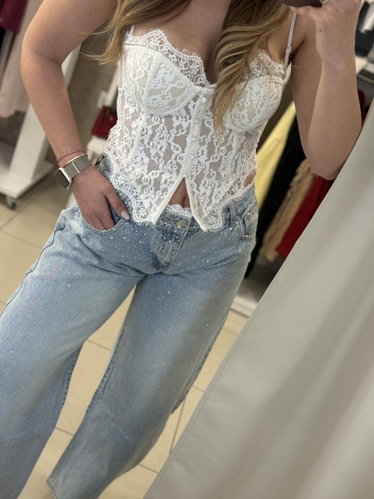 - Χαμηλόμεσο barrel jeans με στρας