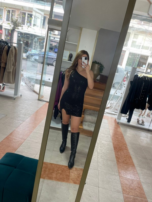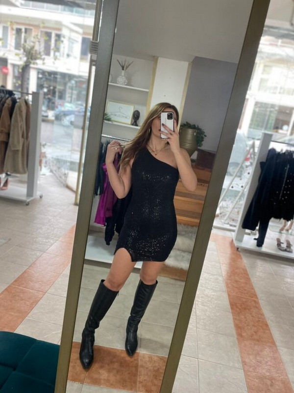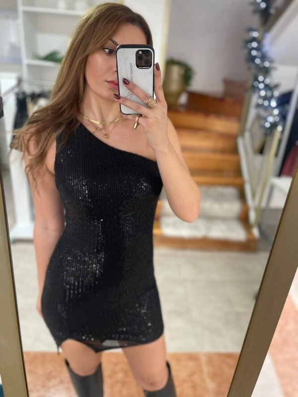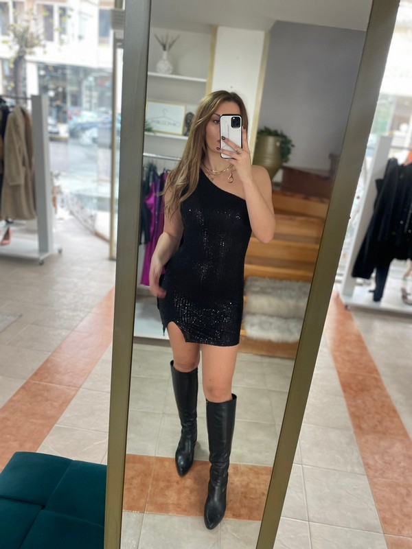 Φόρεμα mini με έναν ώμο και παγιέτα