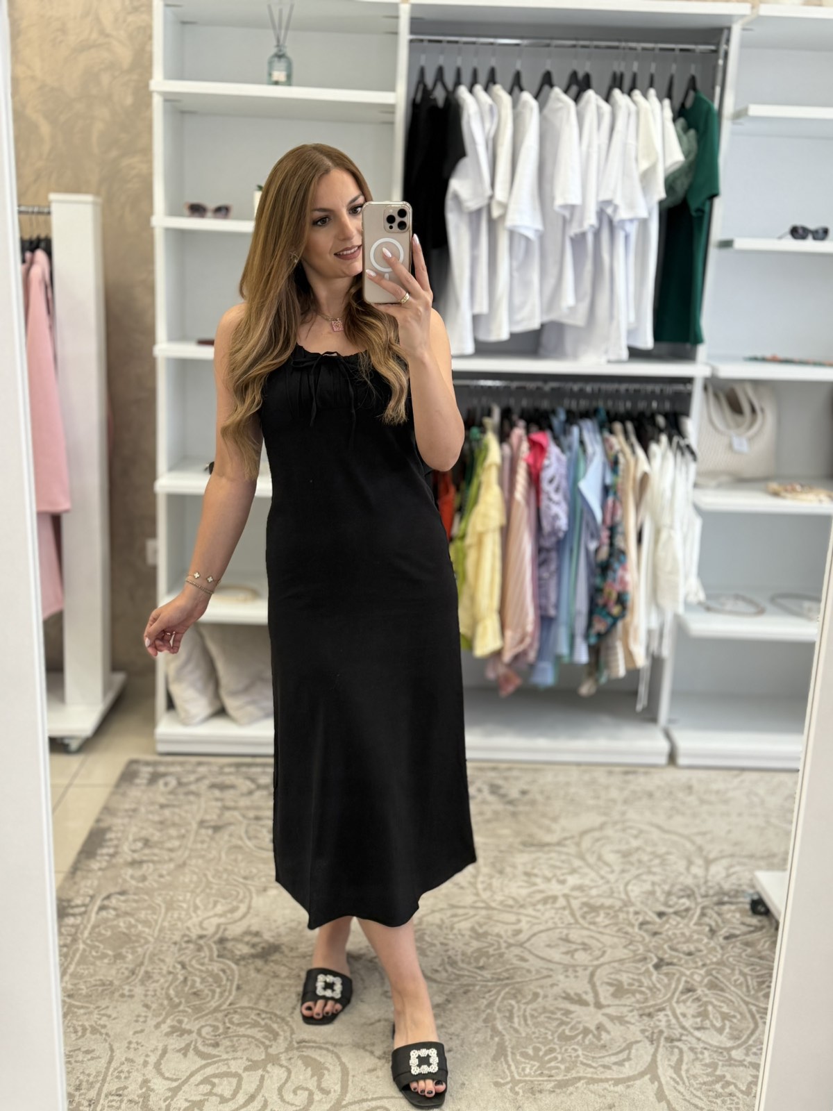 - Midi φόρεμα λινό αμάνικο