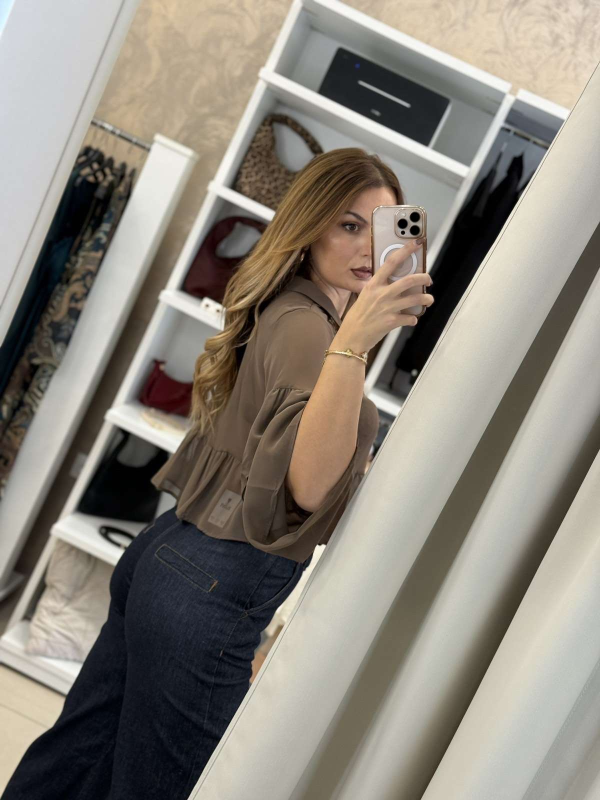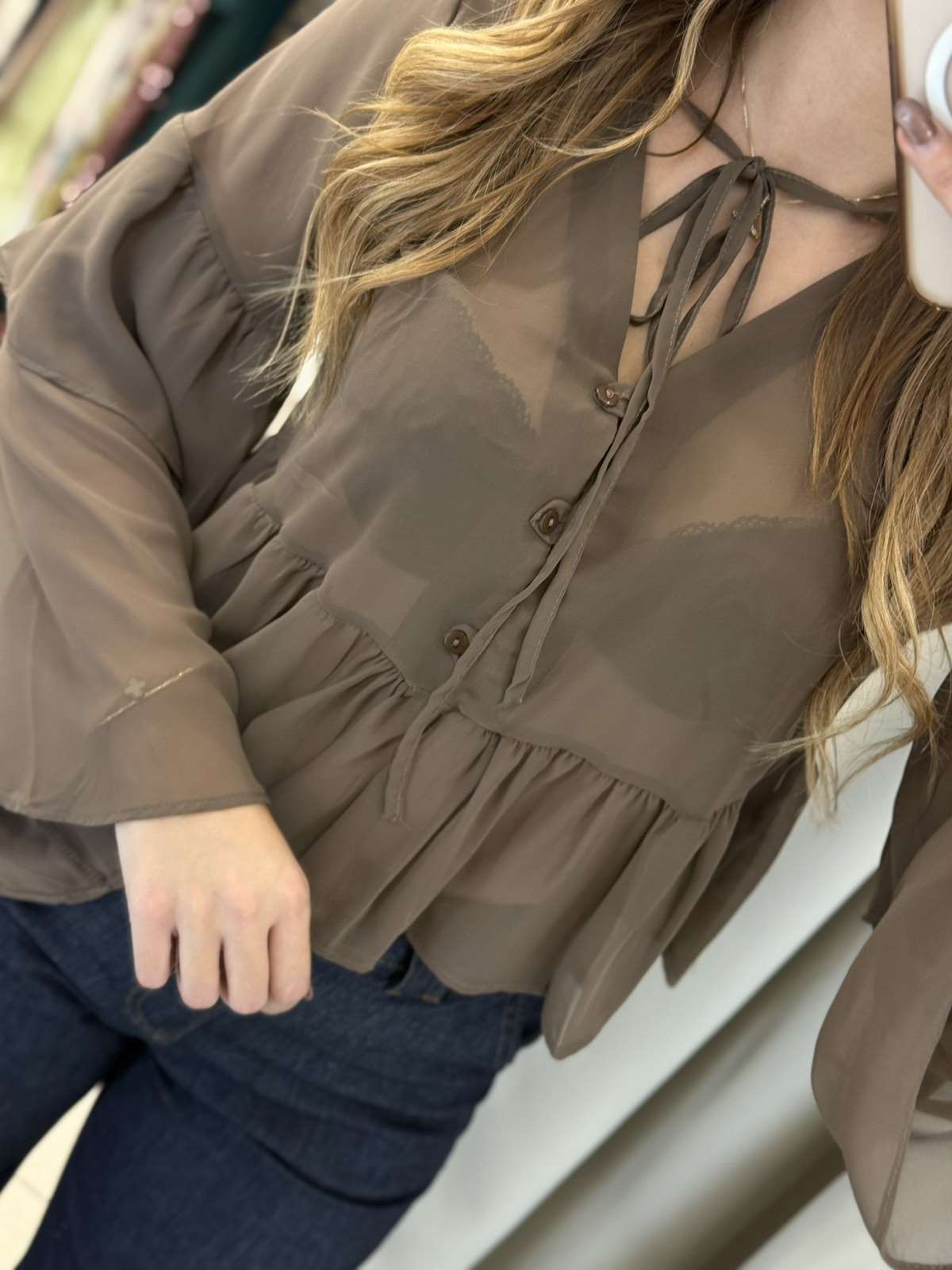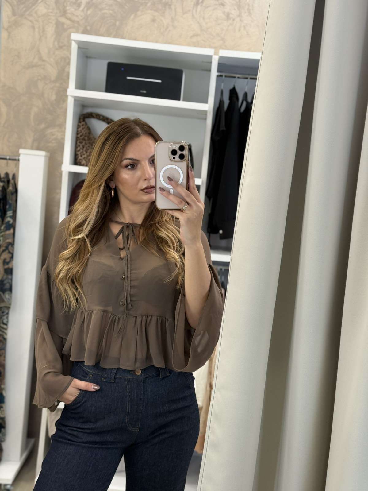 Ruffles see through πουκάμισο – Καφέ