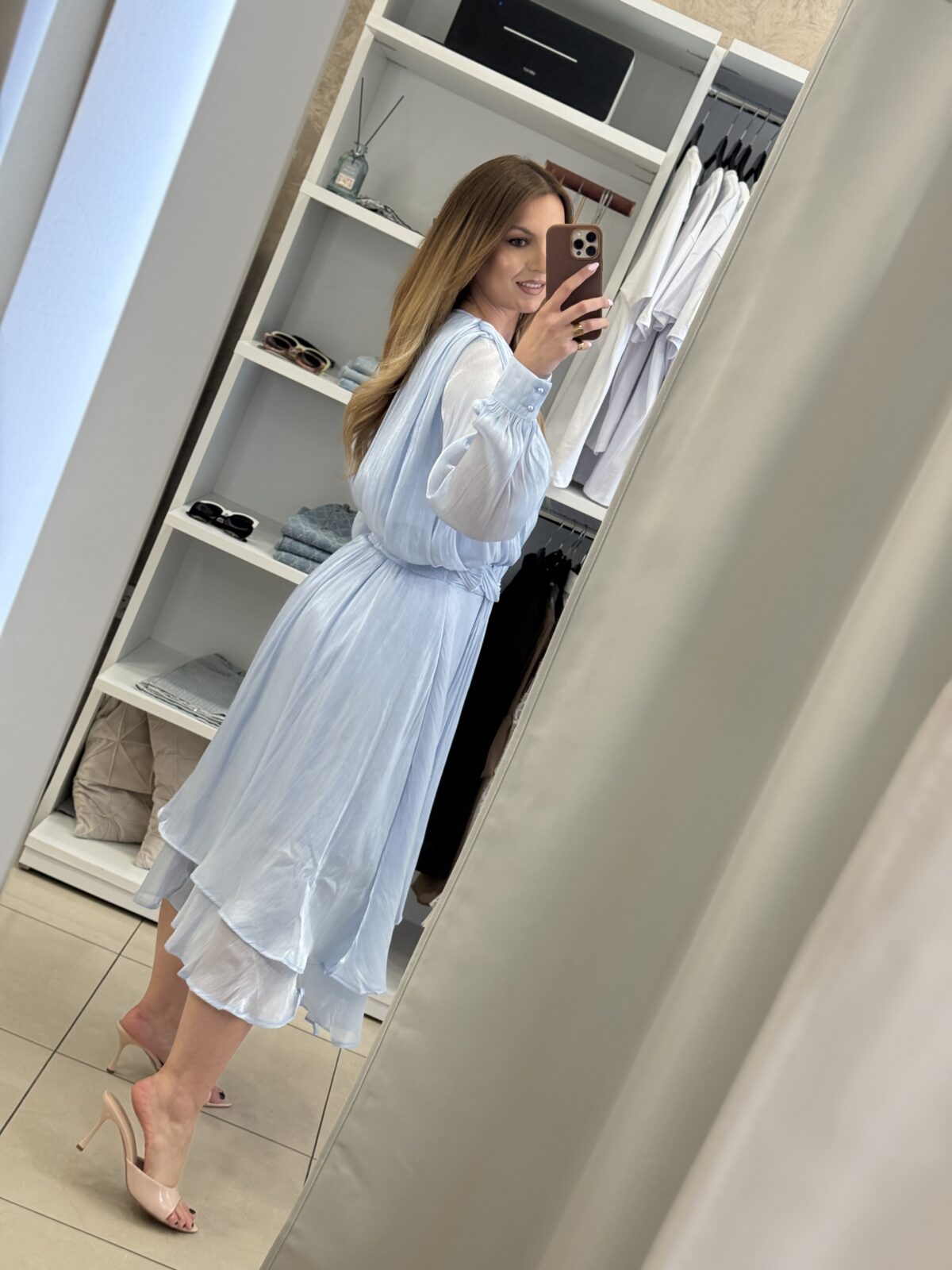 - Midi φόρεμα οργάντζα με ασυμμετρίες στο κάτω μέρος