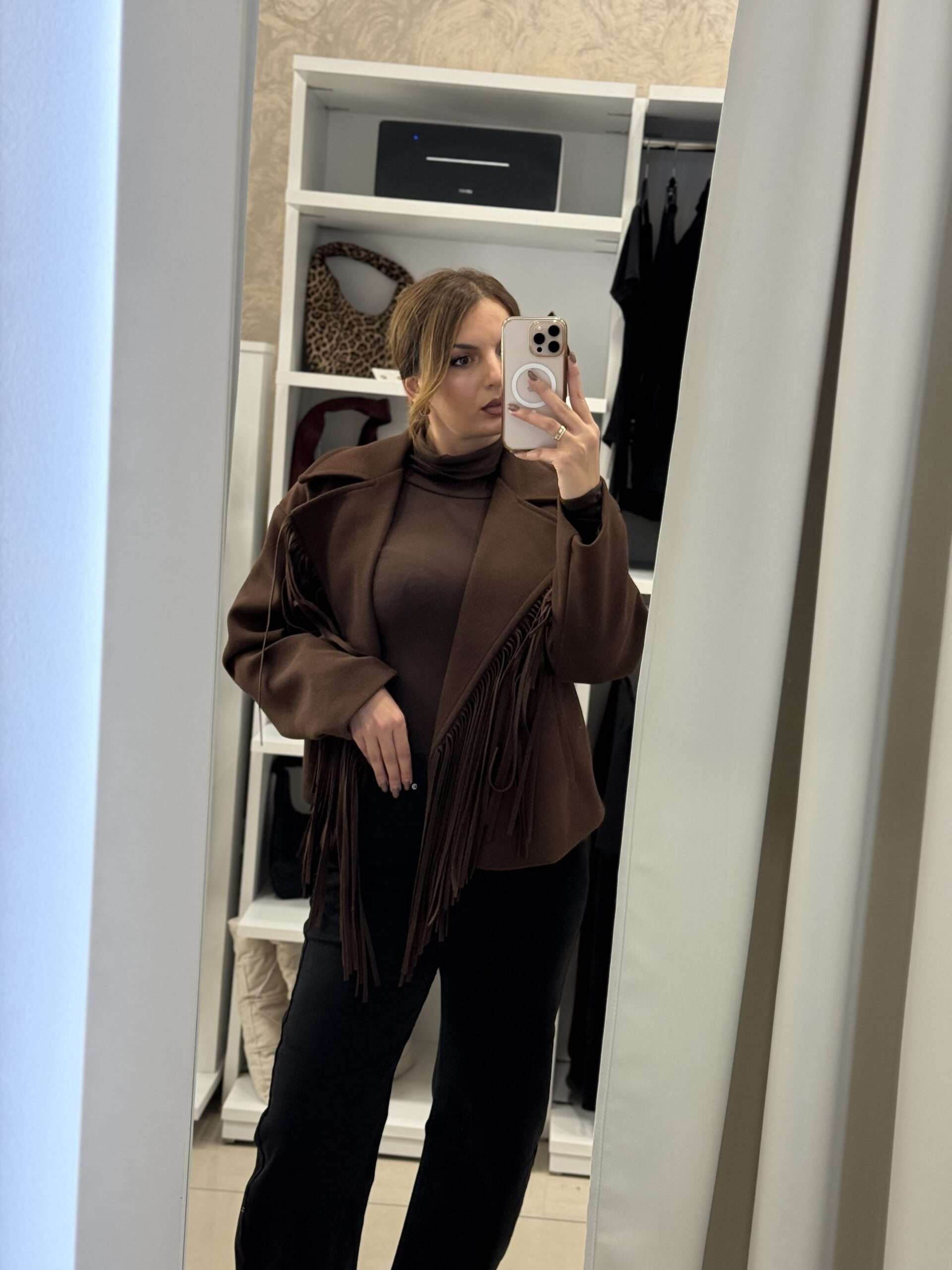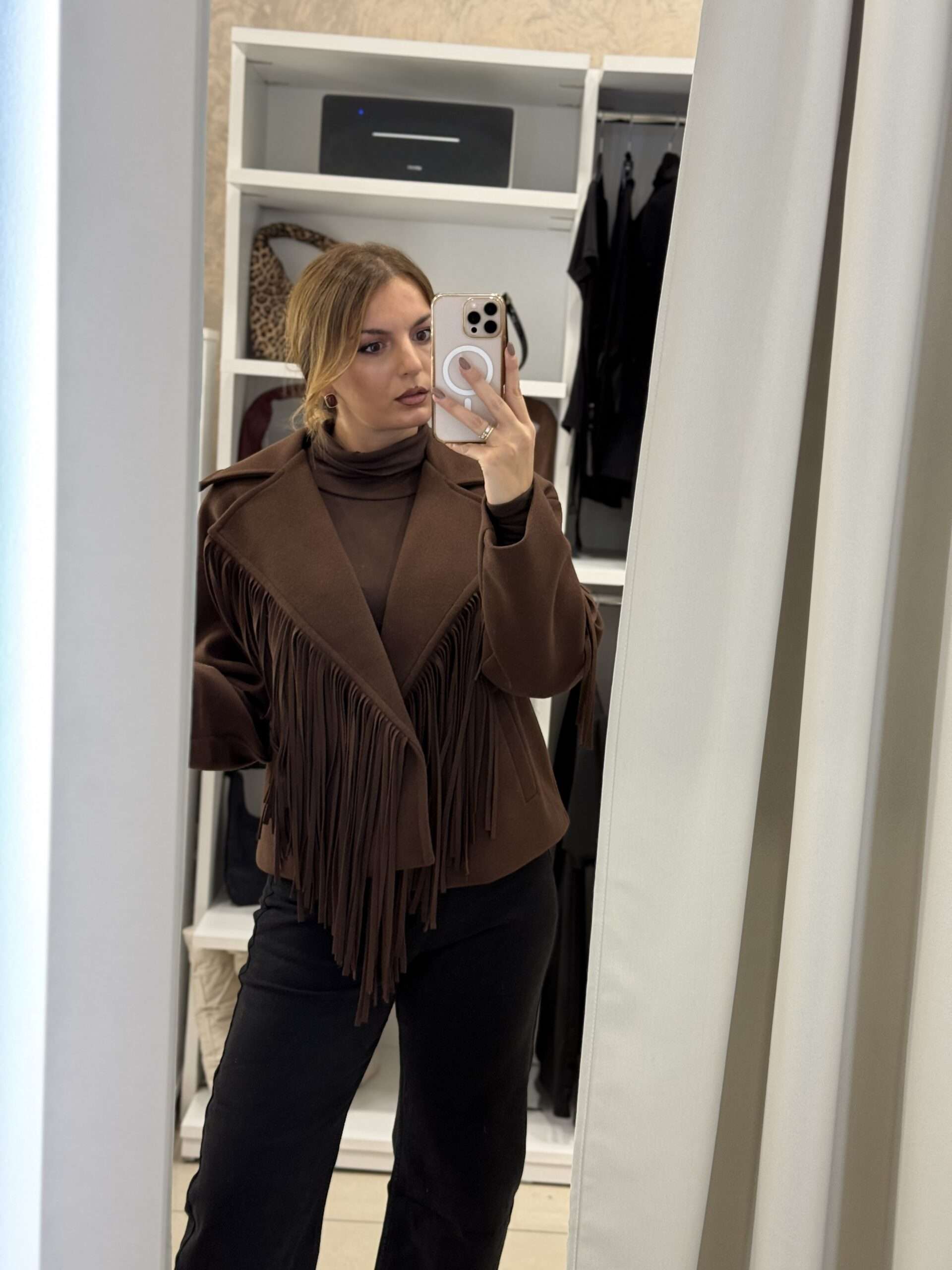 - Crop παλτό με κρόσσια