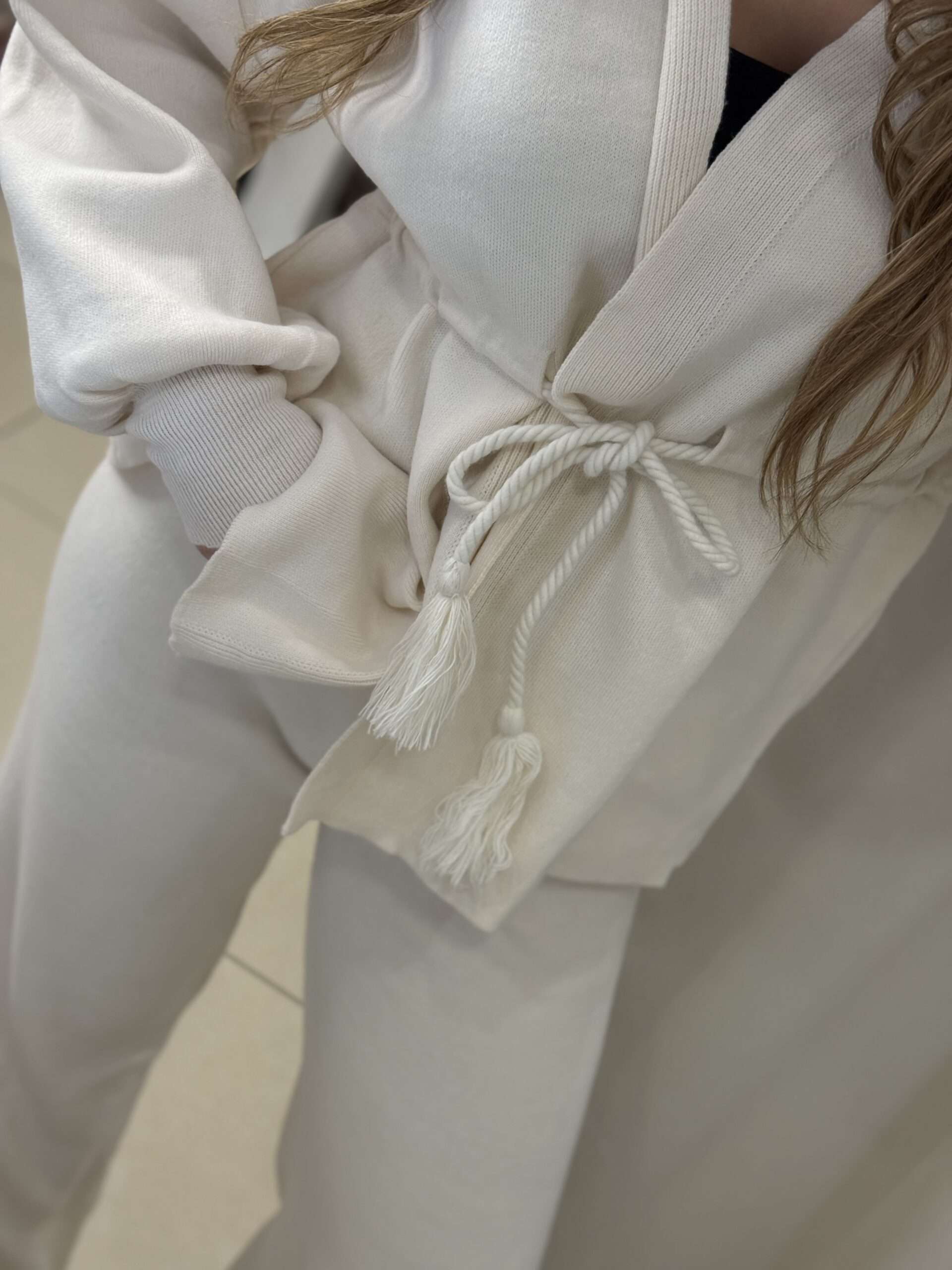 - Ζακέτα άνετη με κλείσιμο κορδόνι και φούντα λεπτομέρεια